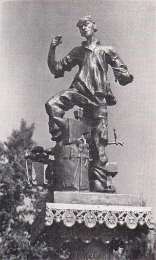 Нетрудно заметить, что атрибутивные памятники - работы преимущественно камерные. Предметность в монументе появляется как бы рука об руку с его «демонументализацией»: уменьшением абсолютного размера, снижением постамента, ориентацией на существование памятника в специально для него созданной пространственной среде. Станковизация монументальной скульптуры и увеличение числа атрибутивных памятников явления одного порядка. Памятник перестал чуждаться станковизма, зачастую не боится и жанра, процессы взаимовлияний в скульптуре происходят не на уровне отдельных явлений, а гораздо глубже, и в этих глубинных взаимодействиях есть и положительные и отрицательные стороны. |