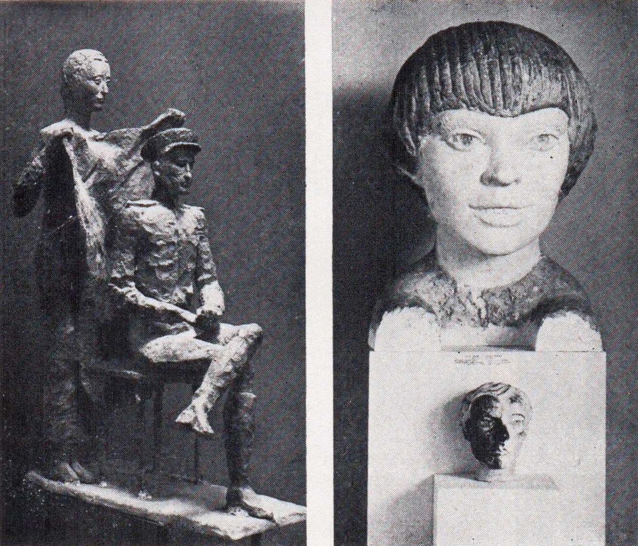 При всем разнообразии композиций каждое изображение заключено в собственное интерьерное пространство. Это либо объем кресла («Поэтесса»), либо пространство ложа («Лежащая»), либо стена («Стоящая»). В последнем случае значительную роль играет тень от фигуры, написанная на стене и придающая изображению особую драматичность. Обретение мудрости в борьбе и страданиях такова, пожалуй, суть образа Ахматовой у Богушевской. Конкретно (пусть это и покажется парадоксальным) решает образ Ахматовой Жилинская (1979—1980, дерево). Речь идет не только о чисто внешних чертах портрета, но и о том, как вполне ощутимо выявлен драматизм ее жизни и творчества. Он прочитывается в символическом противоборстве вертикалей и горизонталей композиции, в противопоставлении трагического облика поэтессы едва обработанным блокам дерева, в «затиснутости» фигуры между ними, в почти осязаемом сопротивлении самого материала резцу скульптора... Жилинская часто обращается к идее многотрудности жизненного пути человека, когда стремление к духовному идеалу сопровождается огромным напряжением сил. Воплощая эту идею, она соответственно строит и композицию на контрастном сопоставлении силуэтов, на диссонансе объемных и пространственных цезур. Так обретает реальную плоть поэтический символ: борьба двух жизненных начал духовного и бытового. Подобный тип реальности встречается все чаще, притом в произведениях, обращенных к самой разнообразной социально-философской проблематике. Работы Блюмель, Богушевской, Жилинской еще раз подтверждают, что в скульптуре опасна не повествовательность как таковая, а облегченное понимание самого ее принципа, создающего угрозу реставрации литературно-описательного пафоса, уравненного с чисто внешним уподоблением натуре. В наши дни, когда для всего советского искусства характерно тяготение к большей усложненности образов, на это нужно обратить особенно пристальное внимание. Ведь парадокс современного мышления в том и заключается, что оно совмещает повествование о реальном факте или событии с символической многоплановостью образа, и самое сложное соблюсти баланс между этими составляющими. При нарушении его угроза реставрации «литературности» становится ощутимой не только у тех, кто исповедует «вседозволенность» приемов. Она обнаруживается вдруг и у таких мастеров, как В. Клыков, чьи произведения не раз убеждали в умении скульптора создавать поэтичные, глубоко содержательные образы выразительностью самой пластики. В самом деле, что, как не нарушение искомого равновесия в пользу чистой «литературности», тревожит при взгляде на его композиции «Художник и модель» (1978, гипс), «В. Шукшин» (1976, бронза) или «В. Высоцкий» (1981, гипс)? Хотя нет сомнения в том, что они согреты подлинным огнем гражданственного пафоса и не менее искренни, чем «Игорь Стравинский» (1981, бронза). Итак, соблюдение органичного баланса между конкретно-жанровым и символическим одна из основных проблем сегодняшнего искусства. Недаром она столь же остро встает и в живописи, и в графике последних лет. |