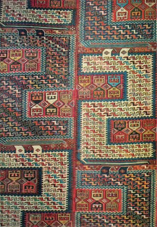 Симпозиум по восточному ковруОсобые по композиции и орнаменту ковры использовались для молитвы (Итеи-Марицт, Швейцария). Е, Постолаки (Кишинев) рассказала о молдавских коврах для похоронного обряда «посмертных коврах», которые, по обычаю, заготавливаются в большом количестве, чтобы можно было выстлать ими и дом и двор. Традиционный рисунок посмертных ковров - три венка из закрытых цветов. «Ковер в быту азербайджанского народа» тема доклада Г. Кулиева (Баку). Восточный ковер широко использовался и в России, и в Европе. Русский интерьер на протяжении XIX века проделал значительную стилистическую эволюцию, тем не менее неизменно включал в себя восточный ковер. Взаимосвязям русского интерьера и восточного ковра было посвящено сообщение О. Семенова (Москва). Органическая связь ковра с бытом, магией, ритуалом на протяжении многих веков безусловно отразилась в его орнаментах, построении композиции, Т. Сабахи (Италия), исследователь, коллекционер, бизнесмен, так объяснил свой интерес к ковру: «Семантика ковра создавалась и развивалась вместе с человеком. Эволюция ковра отражает развитие разума. Этим ковер и представляет для меня особый интерес».