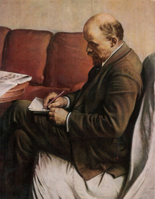 Художник Бродский один из первых советских живописцев, обратившихся к ленинской теме. В конце 20х начале 30х годов художником была написана серия картин, посвященных В. И. Ленину, и среди них широко известное полотно «В. И. Ленин в Смольном». Эту картину, где так достоверно передан образ Ленина-мыслителя, художник выделял из многих своих работ. «Я хотел передать в ней Владимира Ильича таким, каким он был. И это кажется мне самым трудным. Каждая подробность в картине должна быть безоговорочно верна... Комнату, все необходимые детали для картины я подробно зарисовал в альбом. Сделанная мною на конгрессе Коминтерна зарисовка Владимира Ильича... послужила мне основой для образа Ленина. Я хотел назвать картину «Декрет о земле», но затем решил, что это сужает тему, и назвал «Ленин в Смольном». |