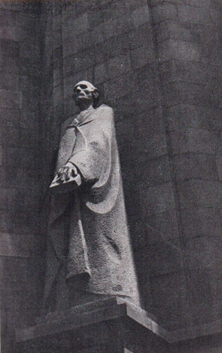 Атрибутика в отечественной монументальной скульптуре явление, разумеется, не новое. Мы найдем атрибуты в работах М.Козловского и И.Мартоса, М.Микешина и С.Волнухина. Интерес к нетрадиционному атрибуту в советской монументальной пластике ненадолго возник в двадцатые - тридцатые годы, затем почти угас и с новой силой проявился в последнее десятилетие. В монументальной скульптуре произошел как бы «взрыв предметности». Краткий обзор статуарных памятников последних лет лучшее тому доказательство: архитектор Туманян с торжественностью жреца возложил руки на стол; Пиросмани трепетно прижал к груди барашка; Мицкевич склонился над кафедрой; в памятнике Учителю изображена школьная парта; рядом с Ползуновым мы видим модель изобретенной им паровой машины; у Комитаса в руке свиток с нотами; у Сарьяна палитра; у Авиценны книга; в проекте памятника Навои поэт изображен на фоне дерева; Венецианов стоит у мольберта с кистями и палитрой и пишет портрет крестьянки с ребенком; Николай Островский в одной руке сжимает шашку, в другой держит книгу; в памятнике Пшавели узнаются языческая молельня и простреленная медвежья лопатка (образы, заимствованные из стихов поэта); в памятники Пушкину вводятся архитектурные детали в Твери поэт опирается на изящную решетку набережной; в памятнике для молдавского села Пушкино на колонну; вокруг «дедушки Крылова» на Пионерских прудах уютно разместились герои квартета во всеоружии музыкальных инструментов и мартышка с зеркалом и связкой очков; перечисление предметов, окружающих героев памятника Лескову, составит довольно оригинальный список здесь самовар и табуретка, гитара и зеркало.